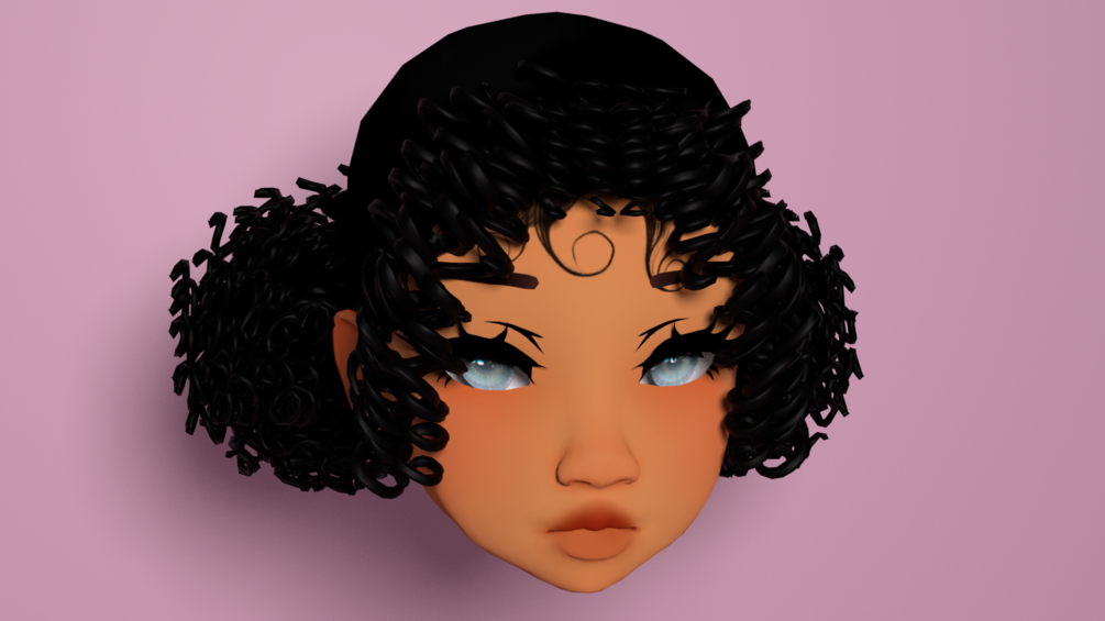 This is just the hair and it is rigged with 3 materials (though can be compressed into 2 if needed). She is about 91k polygons and COULD be decimated but the curls may not look correct. You can also copy paste the buns and make them into one singular bun, top buns, etc! She has one texture for the scalp and none for the curls as you could either use your own texture or just use matcaps or a color wheel.